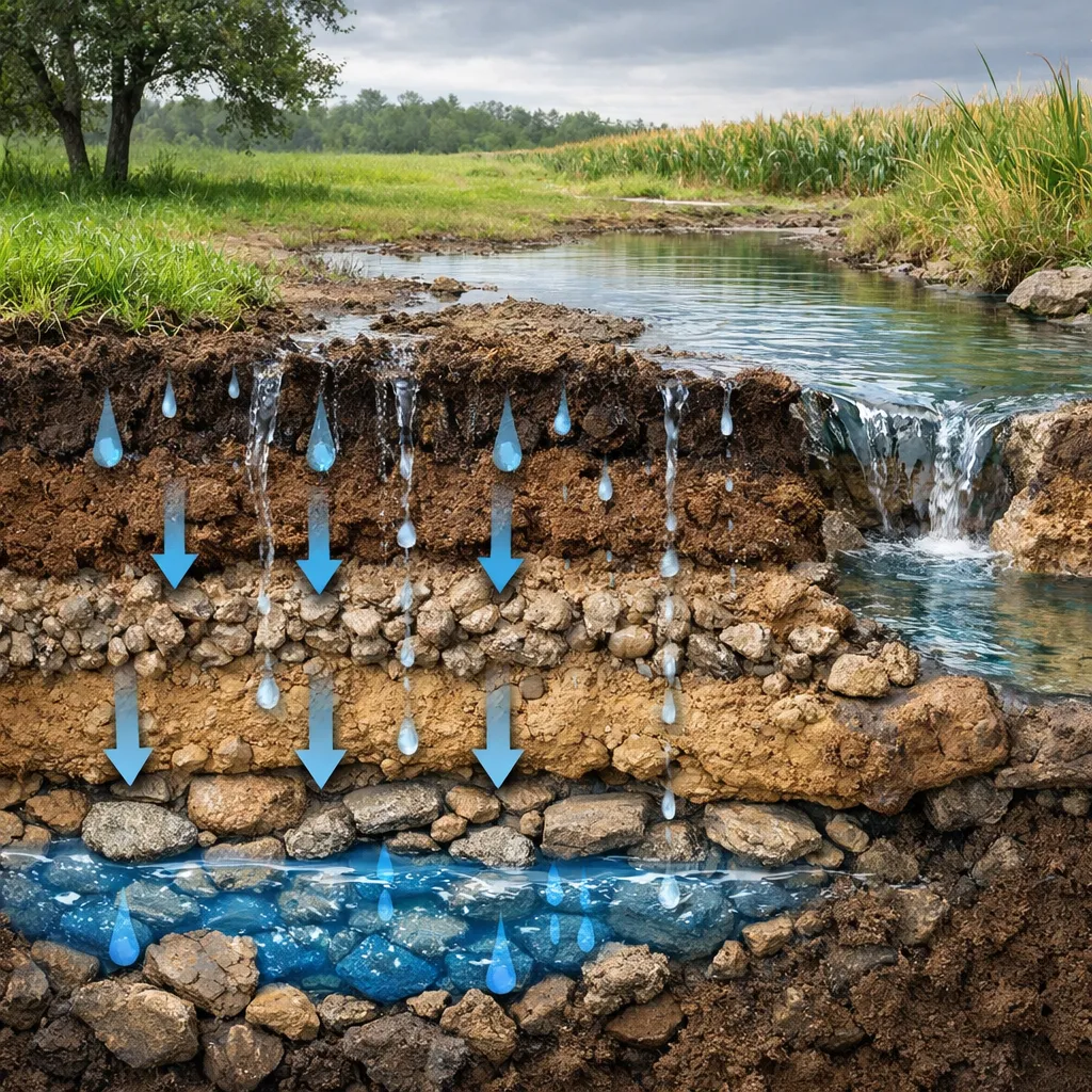 W literaturze hydrologicznej wyróżnia się kilka etapów: retencję powierzchniową (czasowy magazyn na powierzchni i w runie), przepływ przez profil glebowy i ostateczne zasilenie strefy wodonośnej. W zależności od intensywności opadu oraz stanu gleby, woda może zostać zatrzymana w powierzchniowych porach, wchłonięta przez korzenie lub przemieścić się głębiej jako część stałych procesów przepływowych. Proces ten jest dynamiczny i zależy od warunków sezonowych oraz działalności człowieka.